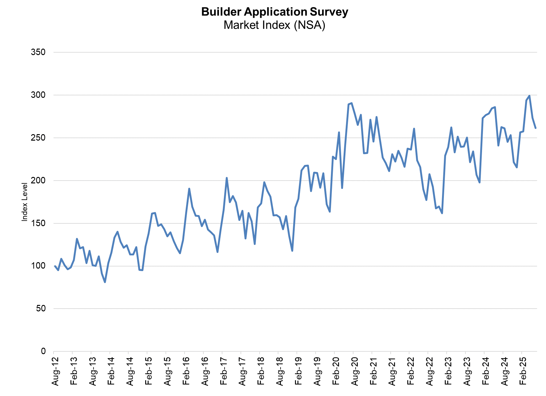 WASHINGTON, D.C. (July 17, 2025) – The Mortgage Bankers Association (MBA) Builder Application Survey (BAS) data for June 2025 shows mortgage applications for new home purchases increased 8.5 percent compared from a year ago. Compared to May 2025, applications decreased by 4 percent. This change does not include any adjustment for typical seasonal patterns.