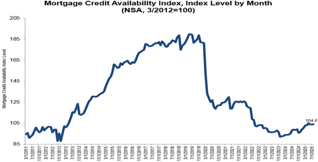 The MCAI rose by 0.1 percent to 104.0 in August. The Conventional MCAI increased 0.3 percent, while the Government MCAI decreased by 0.1 percent. Of the component indices of the Conventional MCAI, the Jumbo MCAI remained unchanged, and the Conforming MCAI rose by 0.7 percent.